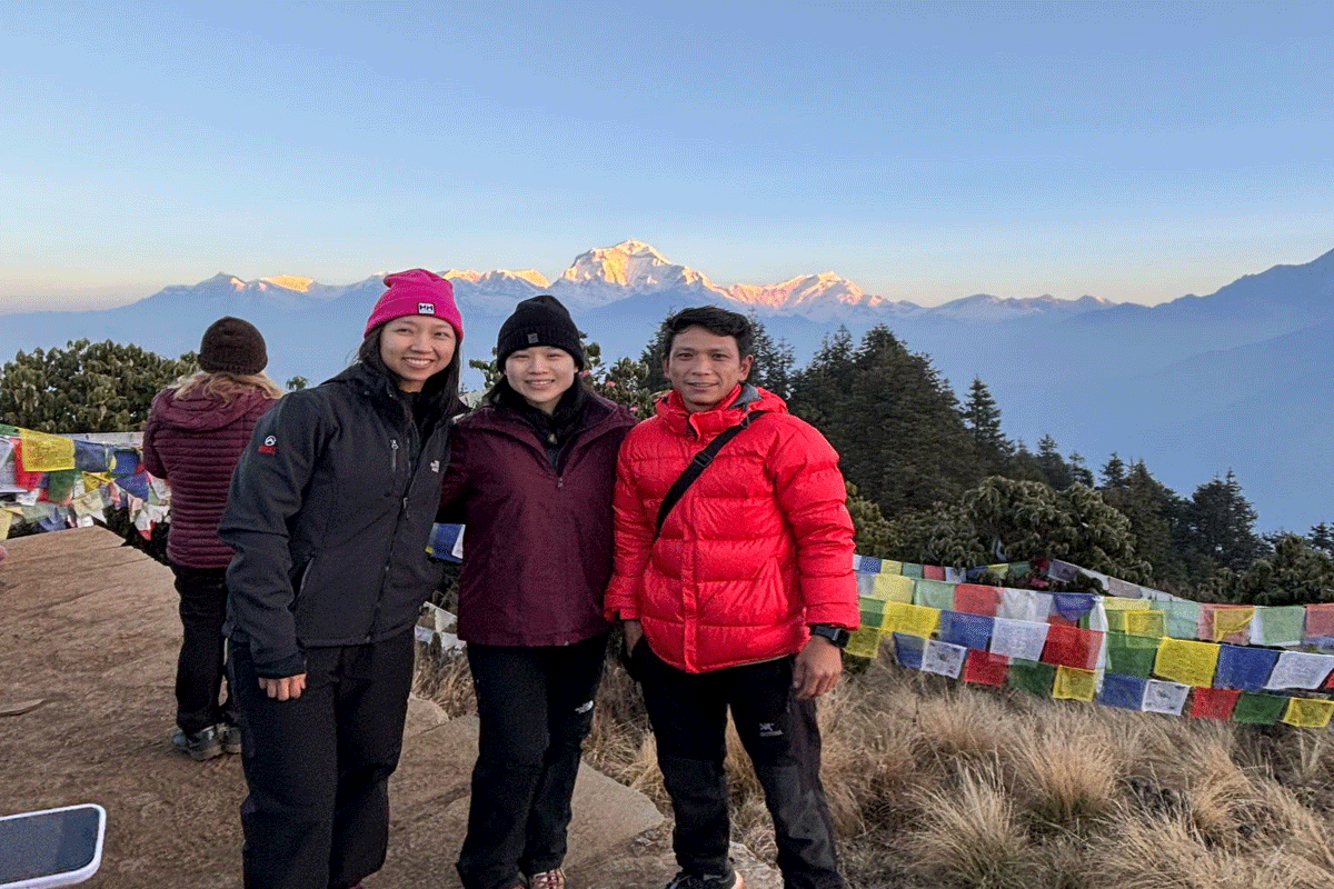 Spring is especially magical for this hike. Nepal’s national flower, the rhododendron, comes into full bloom, covering the forests in red, pink, and white. The striking contrast of flowering trees against snow-covered mountains is breathtaking.